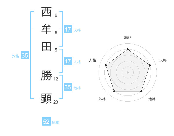 西牟田 勝顕さんを姓名の画数から五運を鑑定