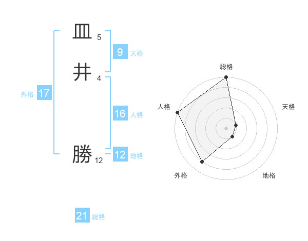 皿井 勝さんの総格は21画の5点!