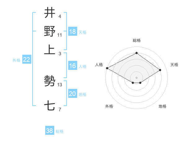 井野上 勢七さんを姓名の画数から五運を鑑定