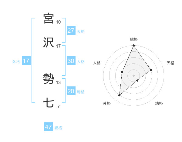 宮沢 勢七さんを姓名の画数から五運を鑑定