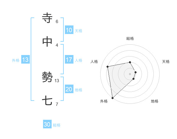寺中 勢七さんを姓名の画数から五運を鑑定
