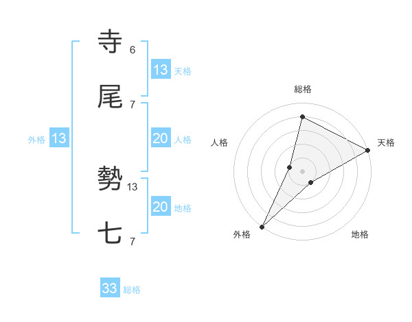 寺尾 勢七さんの総格は33画の4点!