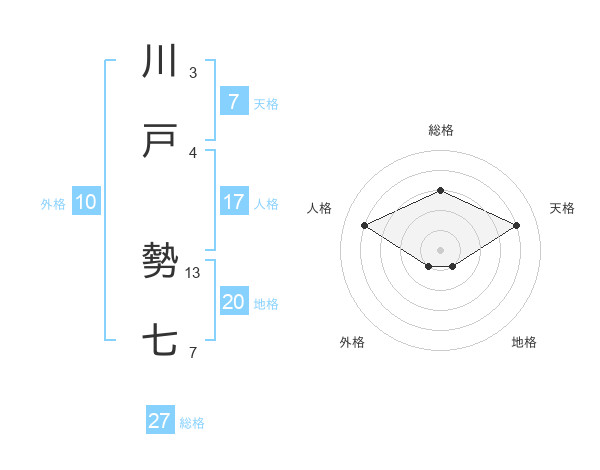 川戸 勢七さんを姓名の画数から五運を鑑定