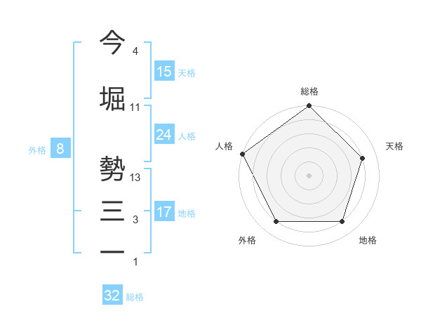 今堀 勢三一さんを姓名の画数から五運を鑑定