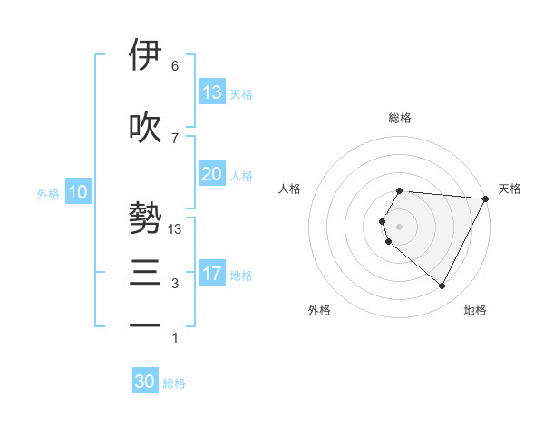 伊吹 勢三一さんの天格は13画の5点!