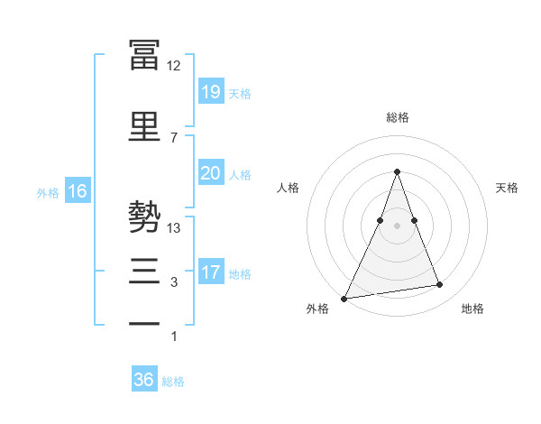 冨里 勢三一さんの総格は36画の3点!
