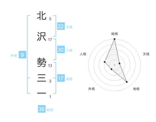 北沢 勢三一さんを姓名の画数から五運を鑑定