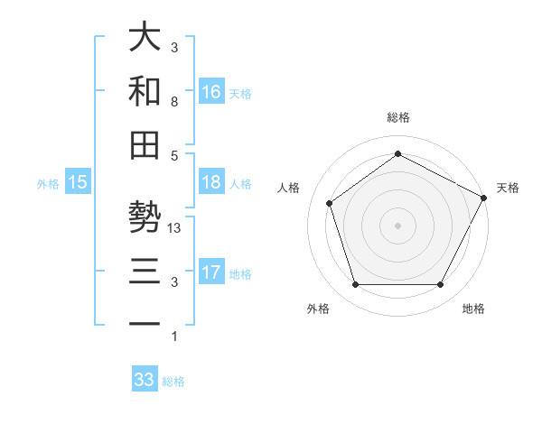 大和田 勢三一さんを姓名の画数から五運を鑑定