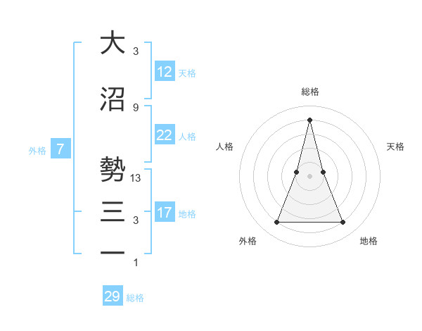 大沼 勢三一さんを姓名の画数から五運を鑑定