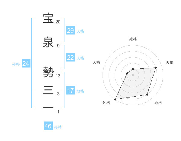 宝泉 勢三一さんを姓名の画数から五運を鑑定