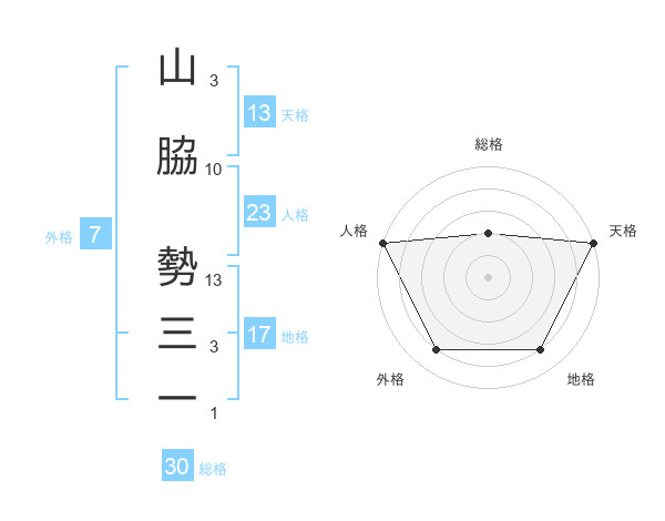 山脇 勢三一さんを姓名の画数から五運を鑑定