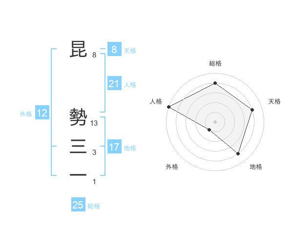 昆 勢三一さんの総格は25画の4点!