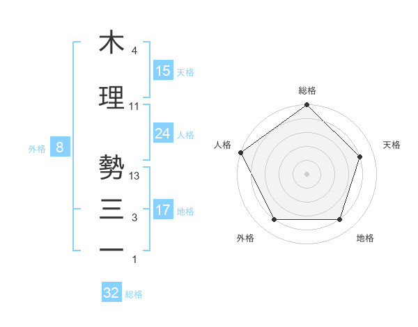 木理 勢三一さんを姓名の画数から五運を鑑定