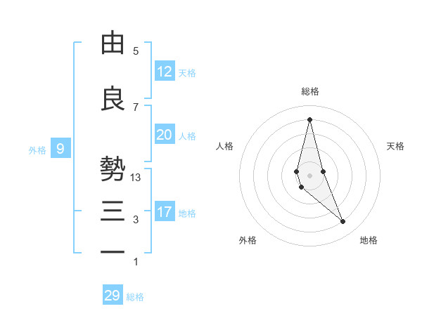 由良 勢三一さんを姓名の画数から五運を鑑定