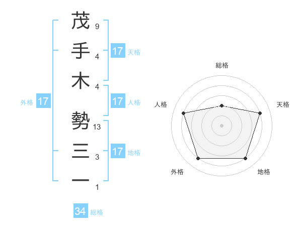 茂手木 勢三一さんの地格は17画の4点!