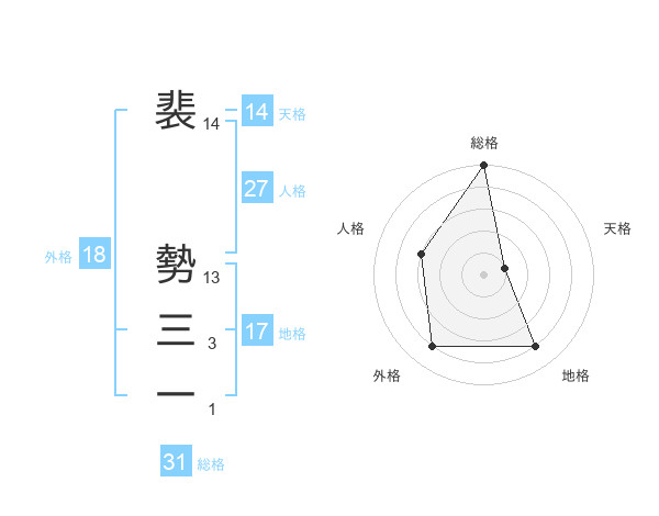 裴 勢三一さんを姓名の画数から五運を鑑定