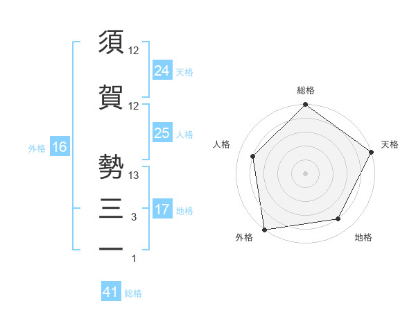 須賀 勢三一さんを姓名の画数から五運を鑑定