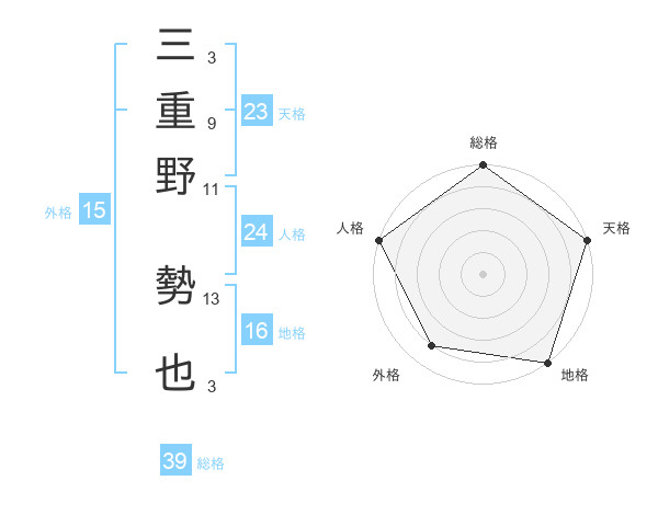三重野 勢也さんを姓名の画数から五運を鑑定