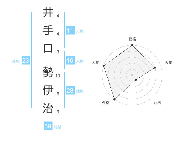 井手口 勢伊治さんを姓名の画数から五運を鑑定