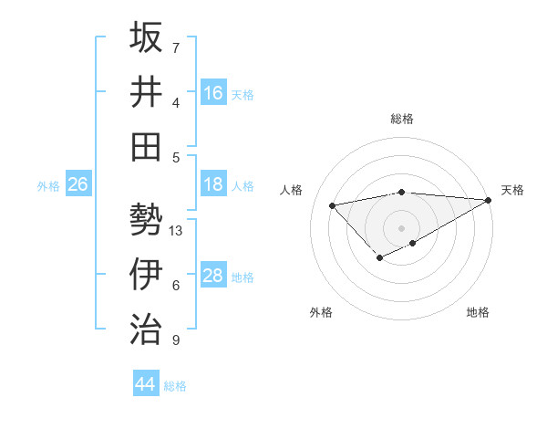 坂井田 勢伊治さんの総格は44画の2点!