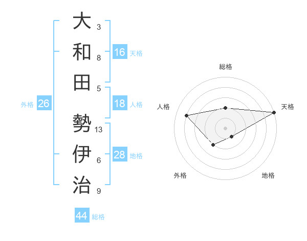 大和田 勢伊治さんを姓名の画数から五運を鑑定