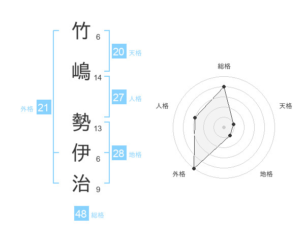 竹嶋 勢伊治さんを姓名の画数から五運を鑑定