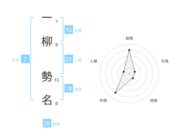 一柳 勢名さんを姓名の画数から五運を鑑定