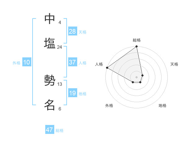中塩 勢名さんの総格は47画の5点!