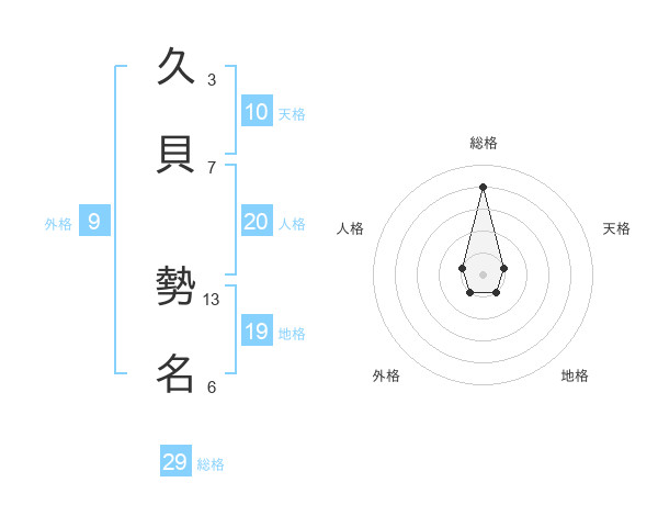 久貝 勢名さんを姓名の画数から五運を鑑定
