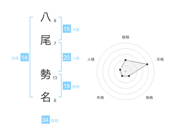八尾 勢名さんの天格は15画の4点!