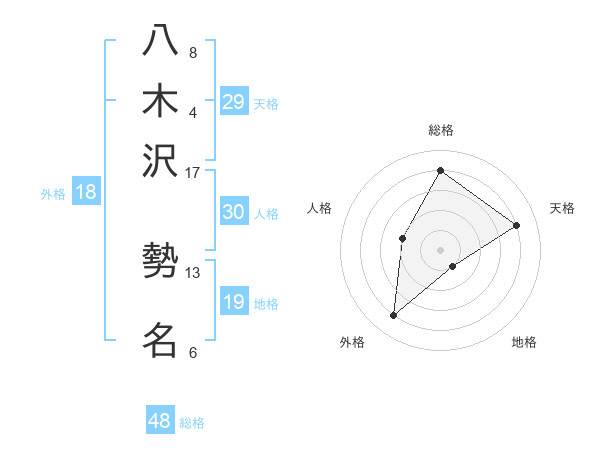 八木沢 勢名さんの天格は29画の4点!