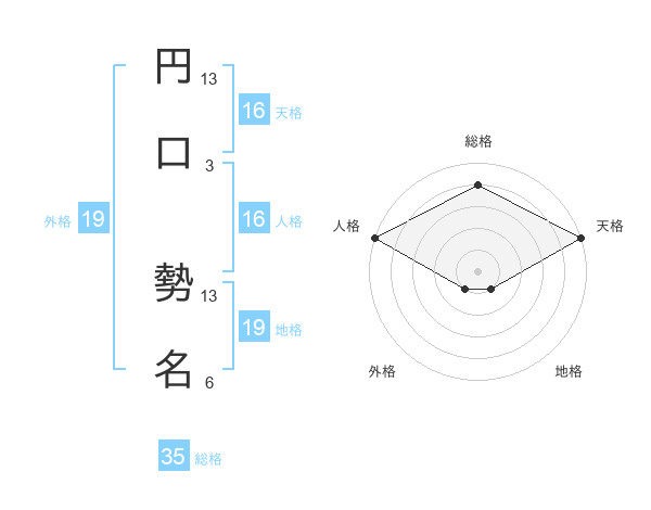 円口 勢名さんの天格は16画の5点!