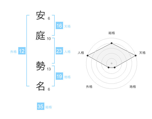 安庭 勢名さんの総格は35画の4点!