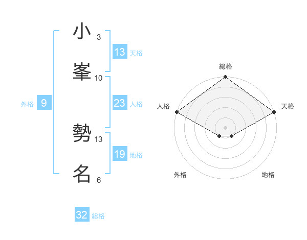 小峯 勢名さんを姓名の画数から五運を鑑定