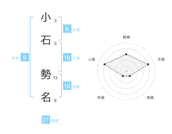 小石 勢名さんの総格は27画の3点!