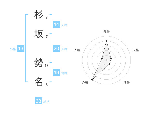 杉坂 勢名さんの総格は33画の4点!