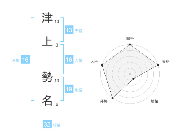 津上 勢名さんの総格は32画の5点!