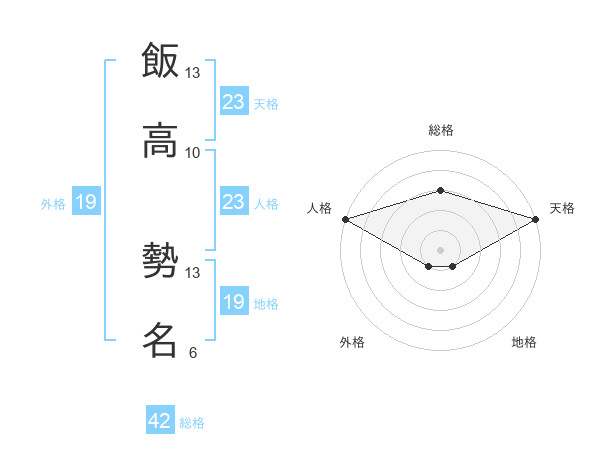 飯高 勢名さんの総格は42画の3点!