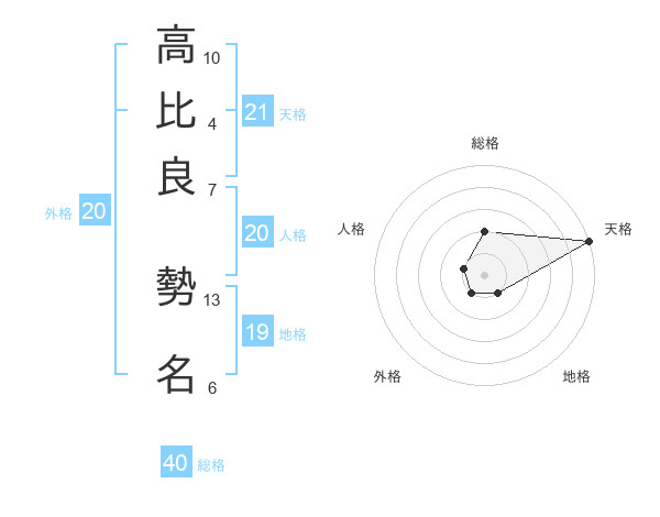 高比良 勢名さんを姓名の画数から五運を鑑定