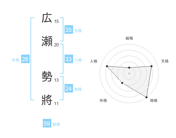 広瀬 勢將さんの総格は59画の1点!