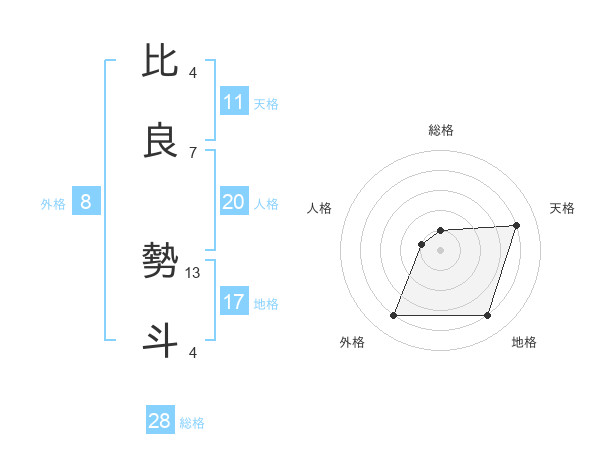 比良 勢斗さんを姓名の画数から五運を鑑定