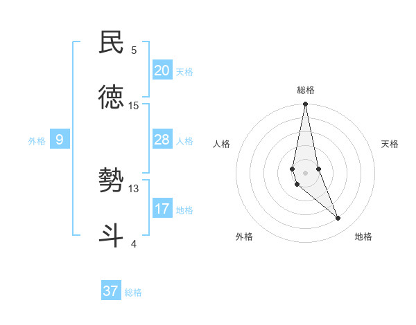 民徳 勢斗さんを姓名の画数から五運を鑑定