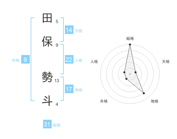 田保 勢斗さんの総格は31画の5点!