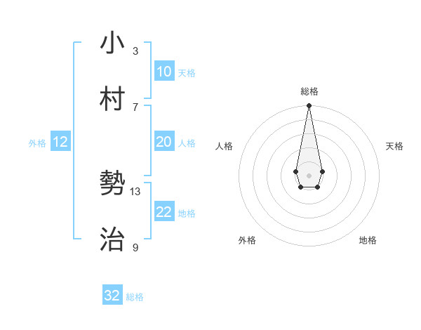 小村 勢治さんの総格は32画の5点!