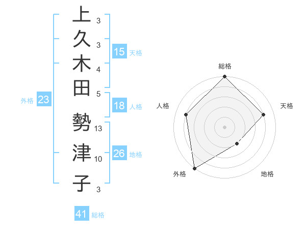 上久木田 勢津子さんを姓名の画数から五運を鑑定