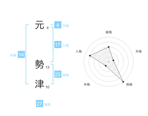 元 勢津さんの総格は27画の3点!