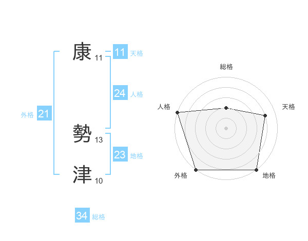 康 勢津さんの天格は11画の4点!