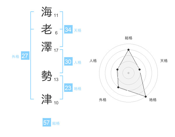 海老澤 勢津さんの総格は57画の4点!