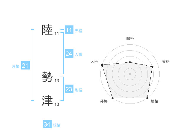 陸 勢津さんの総格は34画の2点!