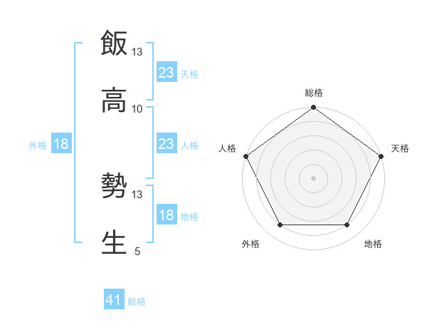 飯高 勢生さんの総格は41画の5点!